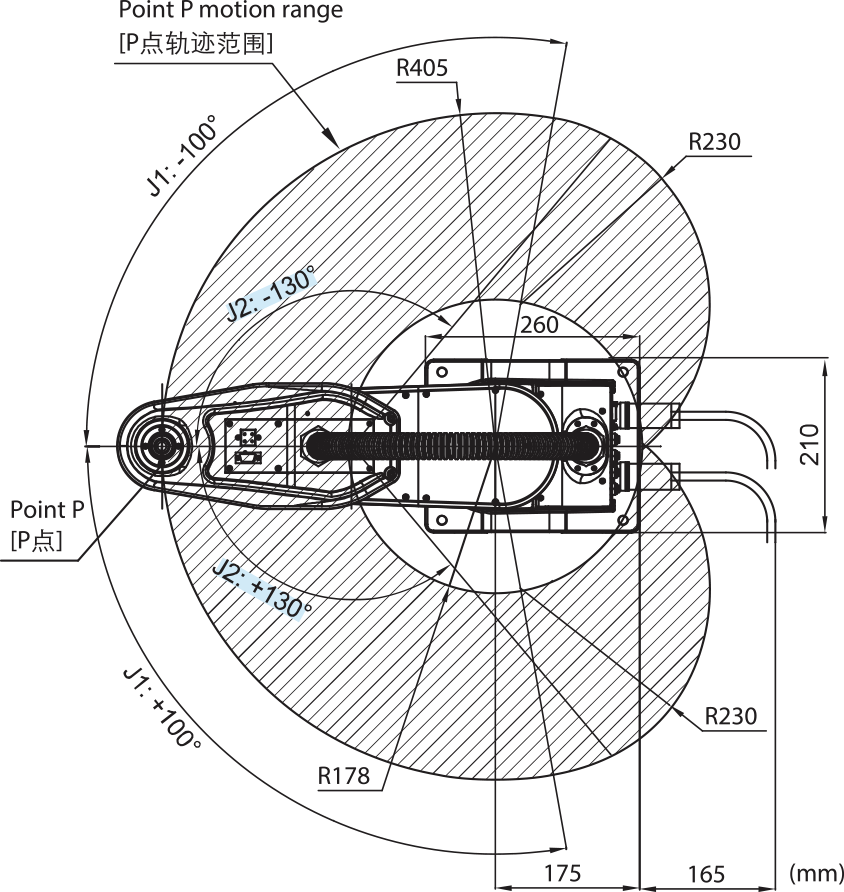 | Total Arm Length(A1 Arm+A2 Arm) 手臂全長(A1+A2) | 405mm(A1:175mm+A2:230mm) | ||